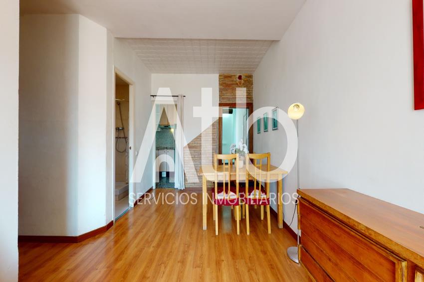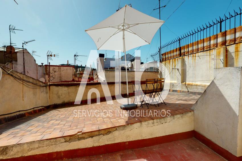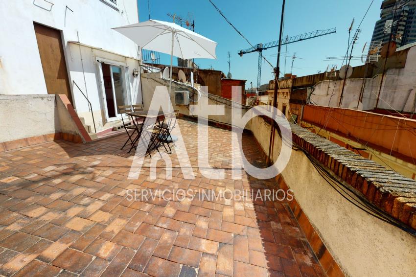Bonito piso con TERRAZA PRIVATIVA de 50m2 en el Raval junto a La Rambla. Dispone de un salón - comedor con acceso directo a la terraza, una cocina independiente, una habitación doble y un baño completo con ducha.
