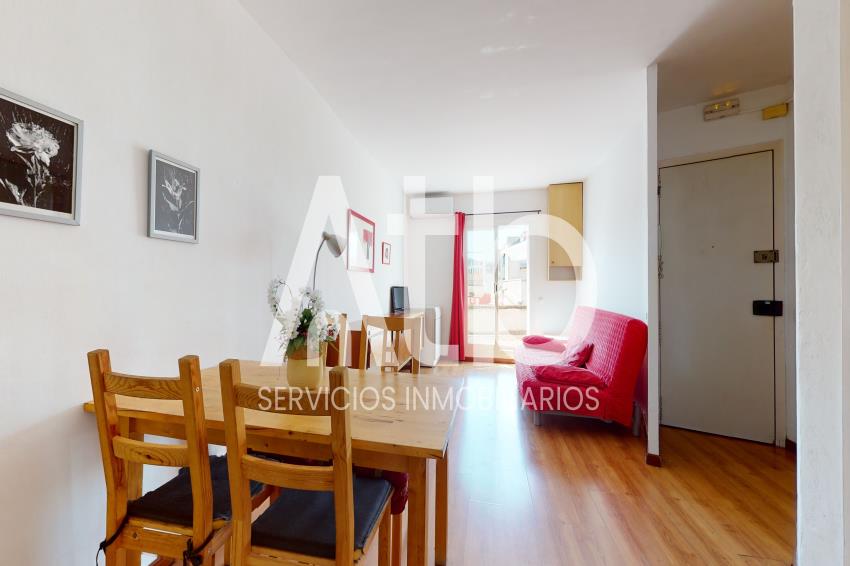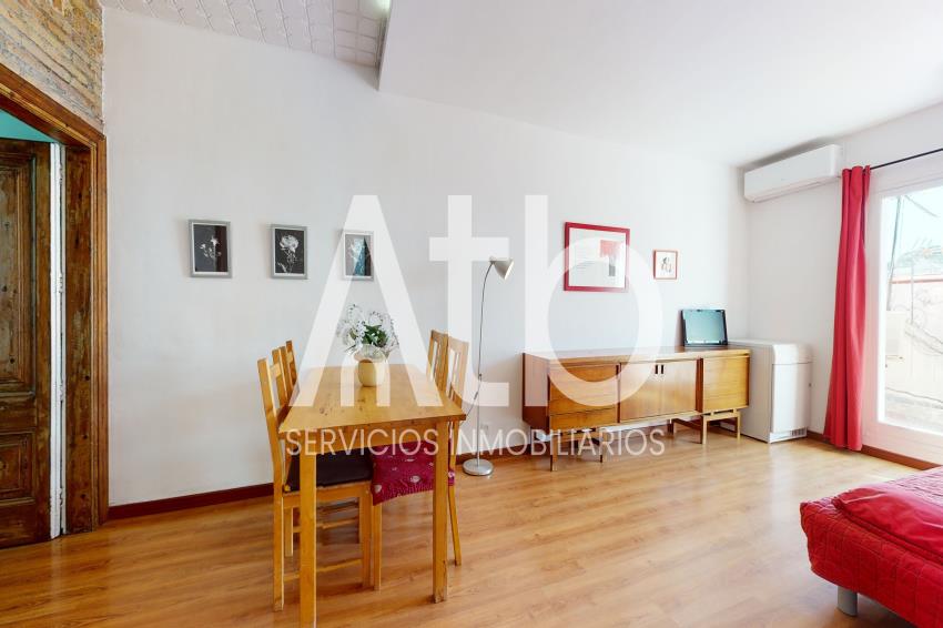 Bonito piso con TERRAZA PRIVATIVA de 50m2 en el Raval junto a La Rambla. Dispone de un salón - comedor con acceso directo a la terraza, una cocina independiente, una habitación doble y un baño completo con ducha.